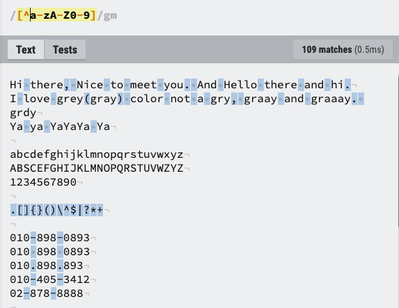 a~z와 A-Z와 0~9에 해당하는 것을 제외한 모든 것을 찾게됨.