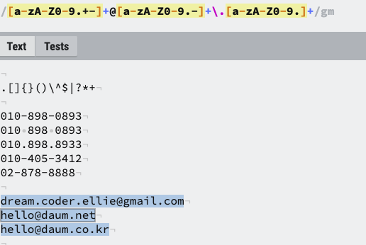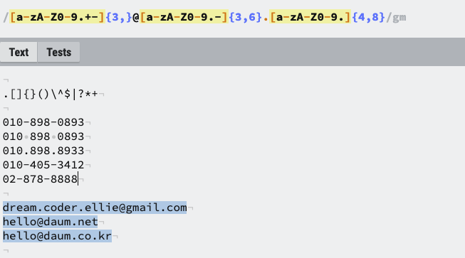 정규표현식은 텍스트에서 필요한 형태의 패턴을 찾을 때 주로 사용이 된다.